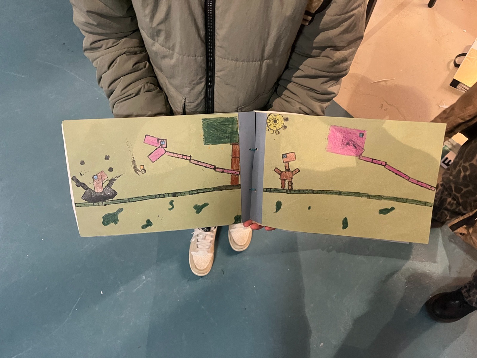Onder begeleiding van Cindy de Graaff hebben de deelnemers gewerkt aan een eigen boek. Een soryboard maken, eigen verhaal bedenken, ontwerpen en experimenteren met LEGO-stempels en vervolgens de bladzijden zelf maken en binden.