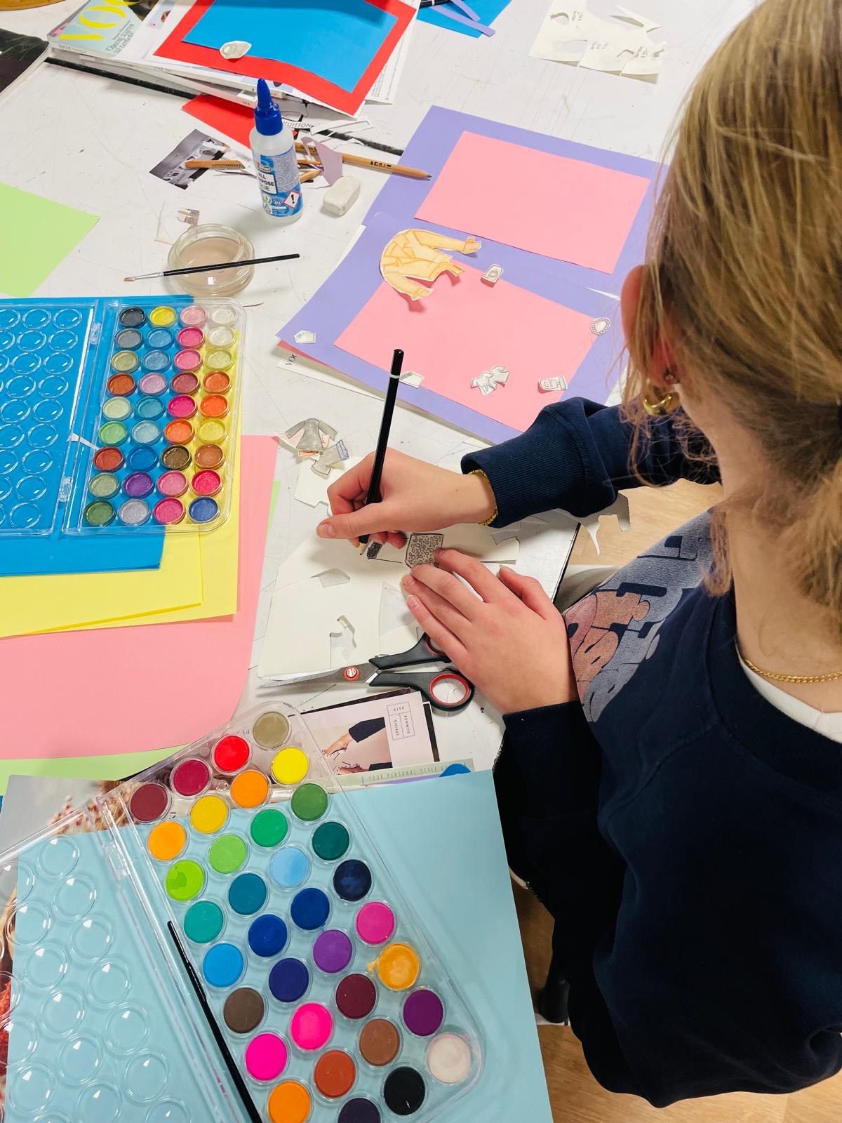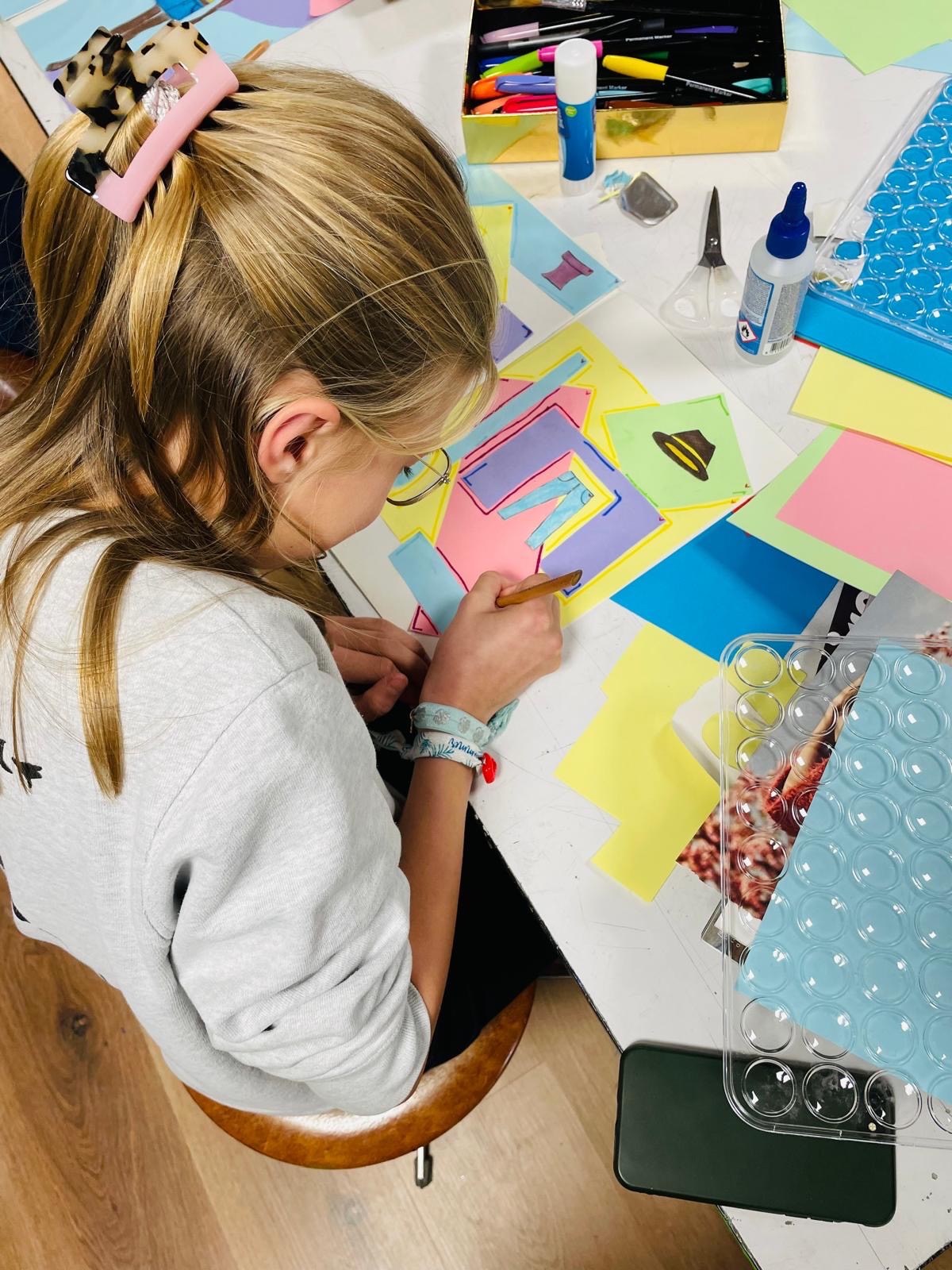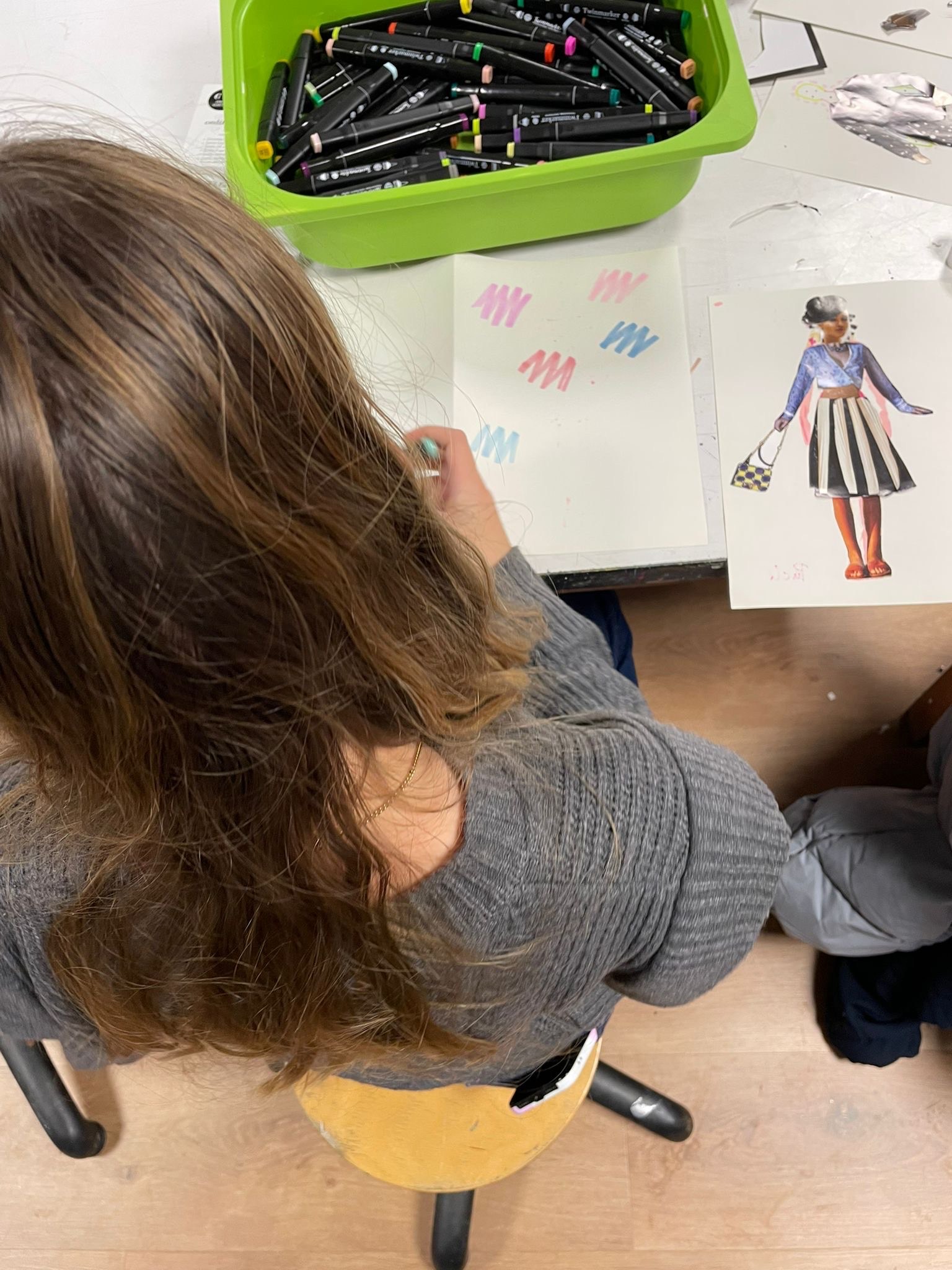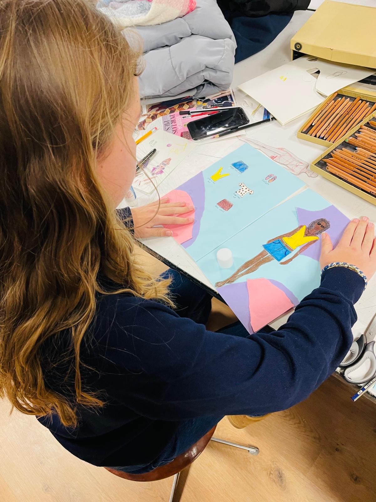 Onder begeleiding van Simone Ruig werkt een groep tieners aan eigen modeboekjes.